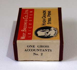 The ‘Accountants’ nib was made for West, Brooks and Co. in the early 1900’s, for more information about this company see 'J' type by West Brooks.